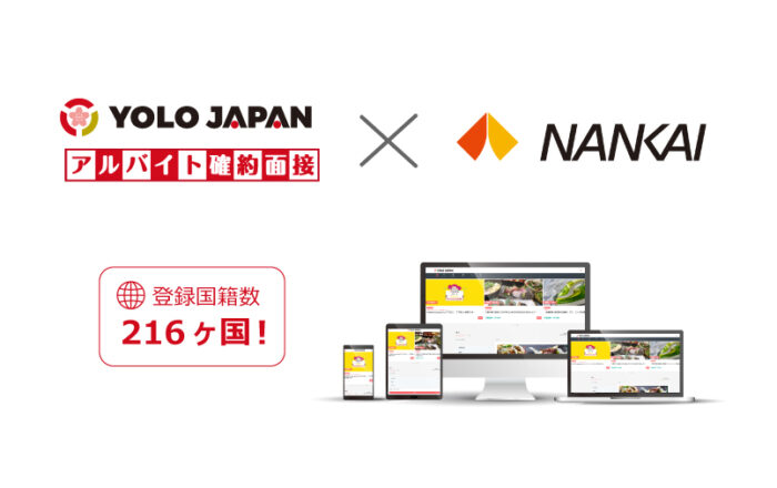 日本に住む216カ国、50,000人の外国人が登録する総合メディアを運営する株式会社YOLO JAPAN(代表取締役:加地太祐、本社:大阪市天王寺区、以下「YOLO JAPAN」は、南海フードシステム株式会社(取締役社長、寺田成、以下「南海フードシステム」)と業務提携をし、南海沿線を中心に人手不足に悩む企業等に外国人アルバイトの紹介と面接設定を行う「アルバイト確約面接」サービスを実施いたします。YOLO JAPANは、南海電気鉄道株式会社(取締役社長兼CEO:遠北光彦、以下「南海電鉄」)より、本年9月13日付で第三者割当増資の引受による出資を受けており、また、2017年11月に南海電鉄が事業主体に決定した「もと馬淵生活館・もと馬淵生活館保育園跡地(大阪市浪速区)」開発事業において、多文化交流拠点「YOLO BASE」を開設し、外国人向けのリアルな就労マッチング支援や生活支援を行うとともに、インバウンド観光客を含めた外国人に日本で暮らし働くことの魅力を伝えていくこととしています。