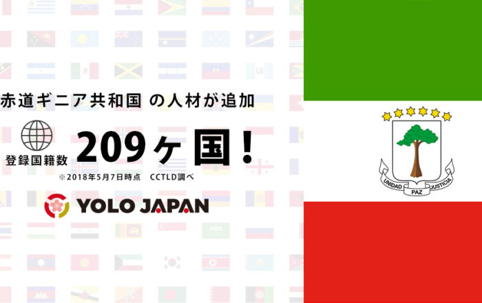 弊社のサービス「YOLO JAPAN」の登録国籍数が209ヶ国になりました!