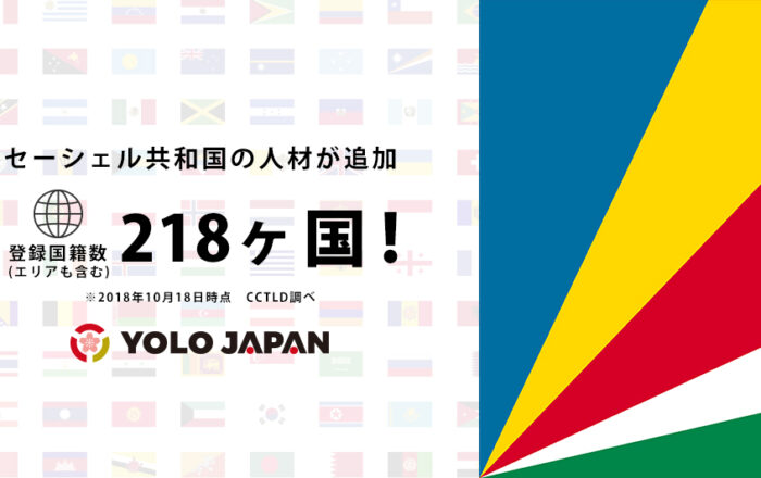 弊社のサービス「YOLO JAPAN」の登録国籍数(エリア含む)が218ヶ国になりました!