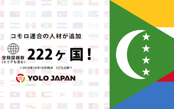 弊社のサービス「YOLO JAPAN」の登録国籍数(エリア含む)が222ヶ国になりました!