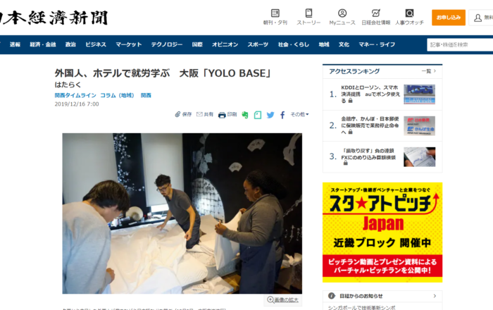 2019年9月にオープンした、外国人向け就労支援施設「YOLO BASE」での取り組みが日本経済新聞に取り上げられました!