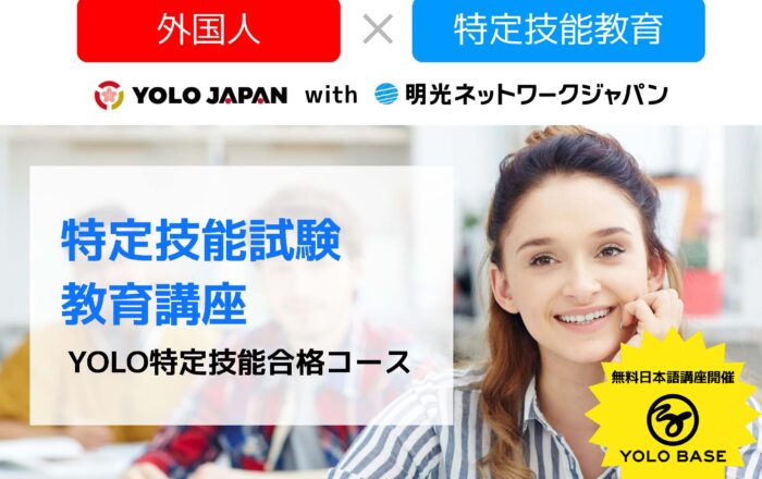株式会社YOLO JAPAN(代表取締役:加地太祐、東京本社:東京都港区、以下「YOLO JAPAN」)は、9月28日より、個別指導の明光義塾を運営する、株式会社明光ネットワークジャパン(代表取締役:山下一仁、本社:東京都新宿区、以下、明光ネットワークジャパン)と業務提携し、特定技能ビザの取得をめざす在留外国人向けにオンラインの日本語学習講座『YOLO特定技能合格コース』を提供することを発表いたします。