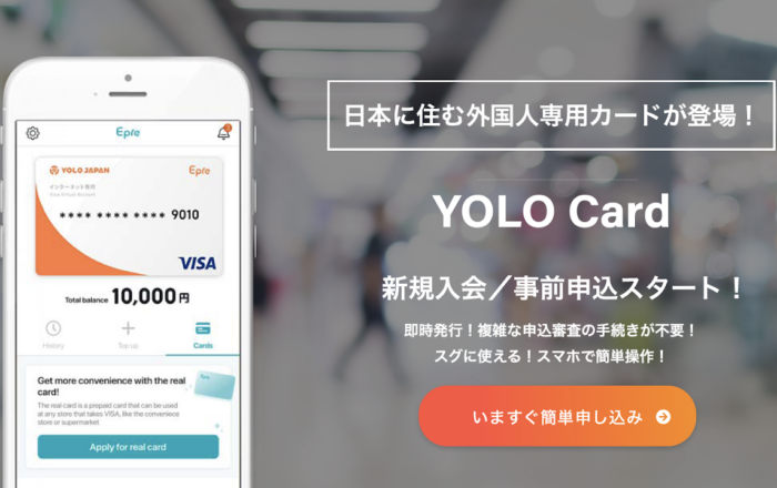 226ヵ国17万人の在留外国人が登録している日本最大級のメディアを運営する、株式会社YOLO JAPAN(代表取締役:加地太祐、大阪本社:大阪市浪速区、以下「YOLO JAPAN」)は、2021年3月19日(金)より、在留外国人向けに後払いチャージ機能付きプリペイドカード「YOLO Card」(以下「YOLO Card」)の事前予約受付を開始します。