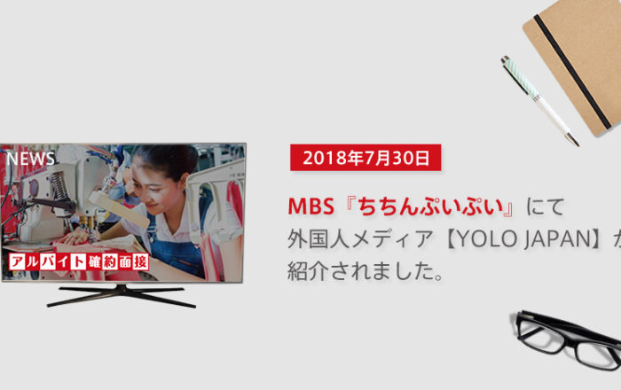 2018年7月31日(火) 15:00~ MBS「ちちんぷいぷい」にて弊社が運営する外国人メディア「YOLO JAPAN」が放送されました。